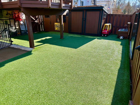 Aunque es pequeño, el patio trasero ha sido cuidadosamente diseñado para ser espacioso y atractivo para los niños durante el tiempo de juego al aire libre. Los equipos y estructuras se colocan en el perímetro del patio para brindar suficiente espacio para el movimiento motor grueso y las actividades sociales. Las características destacables de este espacio son: